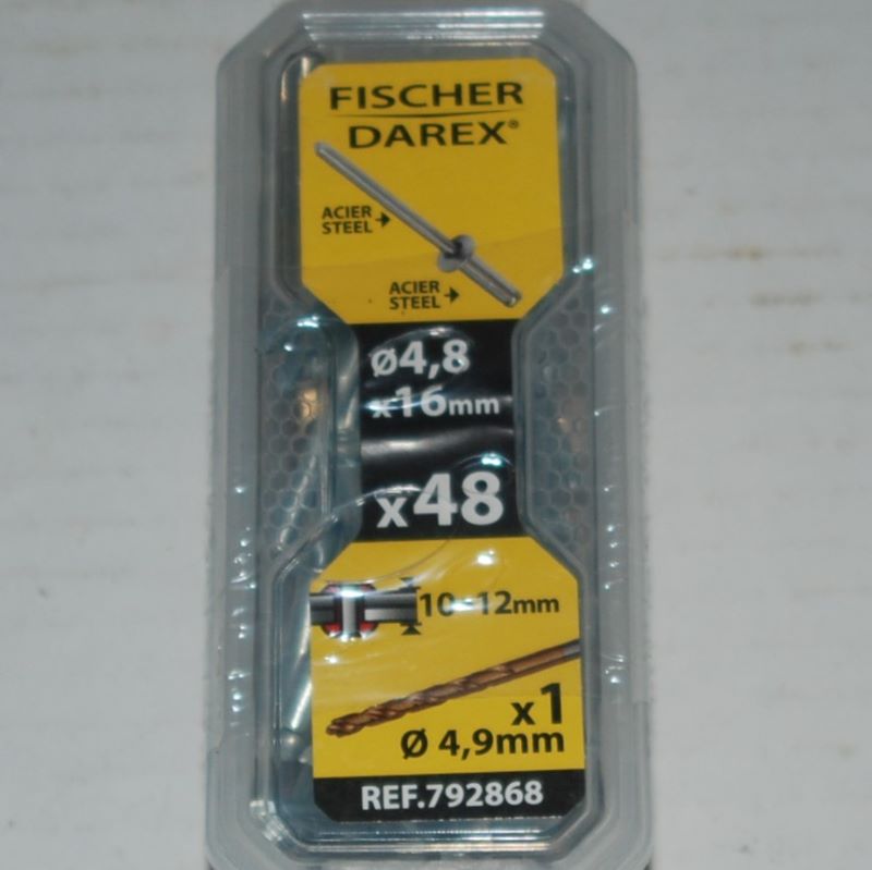 1 boite de 48 rivets aveugles 4,8mm x 16mm Acier avec 1 foret FISCHER DAREX. . . . . . . . .
