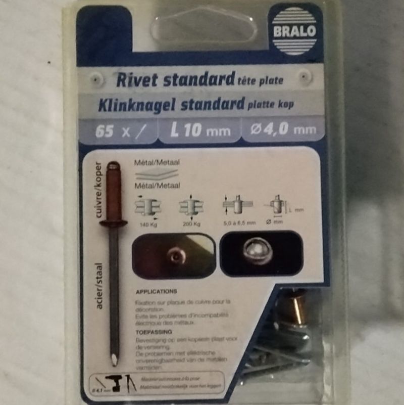 1 boite de 65 rivets aveugles 4mm x 10mm Cuivre BRALO . . . . . . . .
