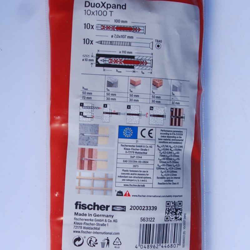 10 Chevilles rallongées DuoXpand 10 x 100 T en acier électrozingué Ref. 563122 FISCHER DAREX