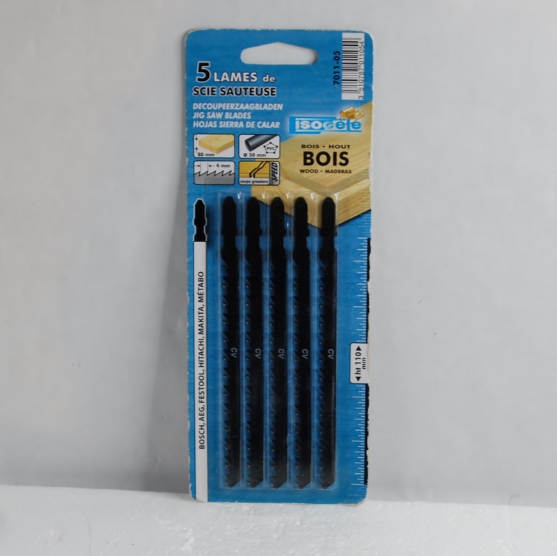 5 Lames longues Scie Sauteuse Bois ISOCELE. Attache en T