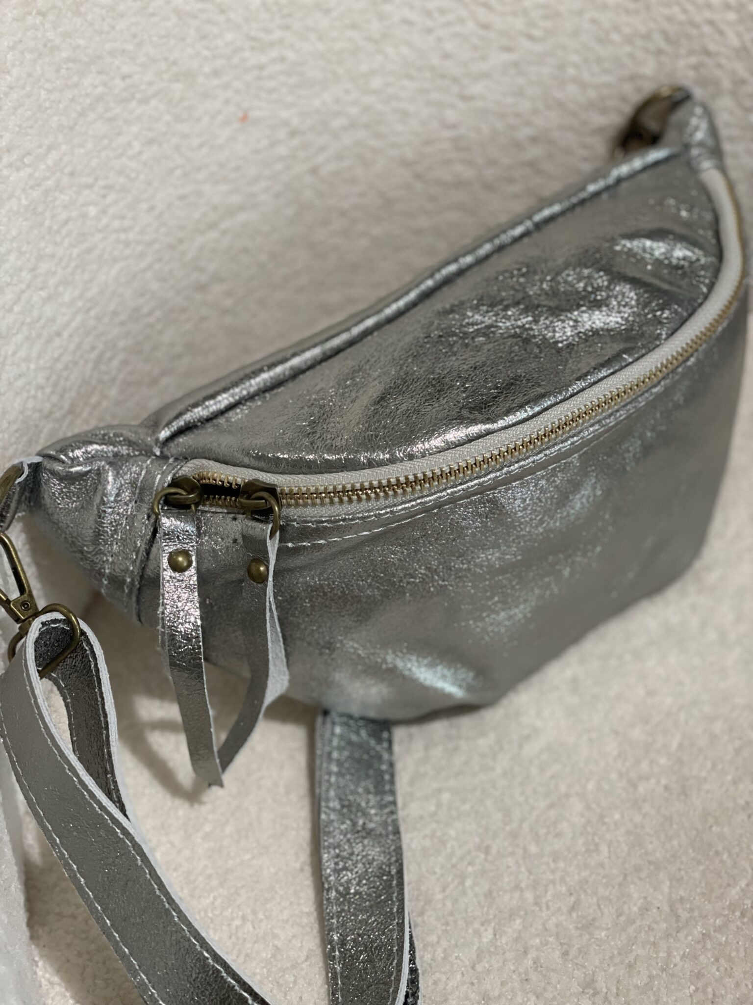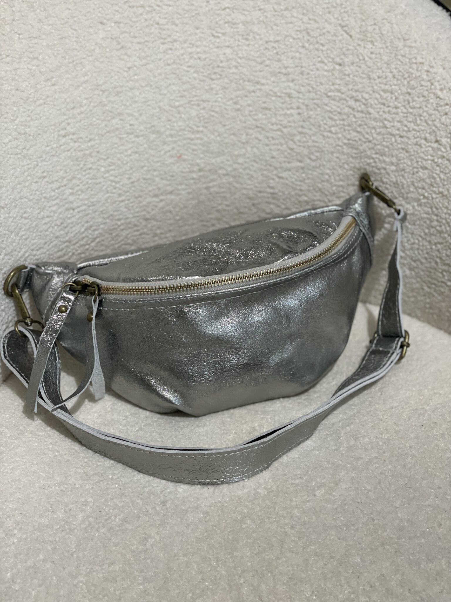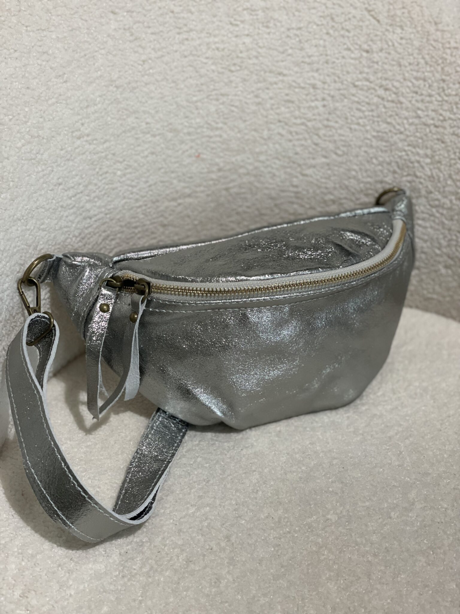 Banane en cuir Poche zippée à l’intérieur Bandoulière amovible et réglable Made in Italy Dimension: 27×15 cm