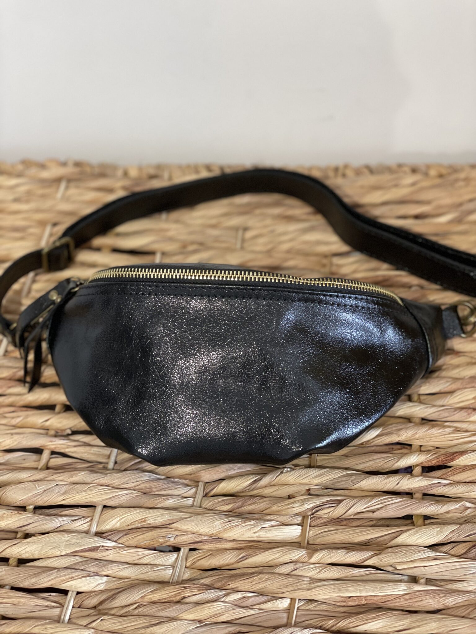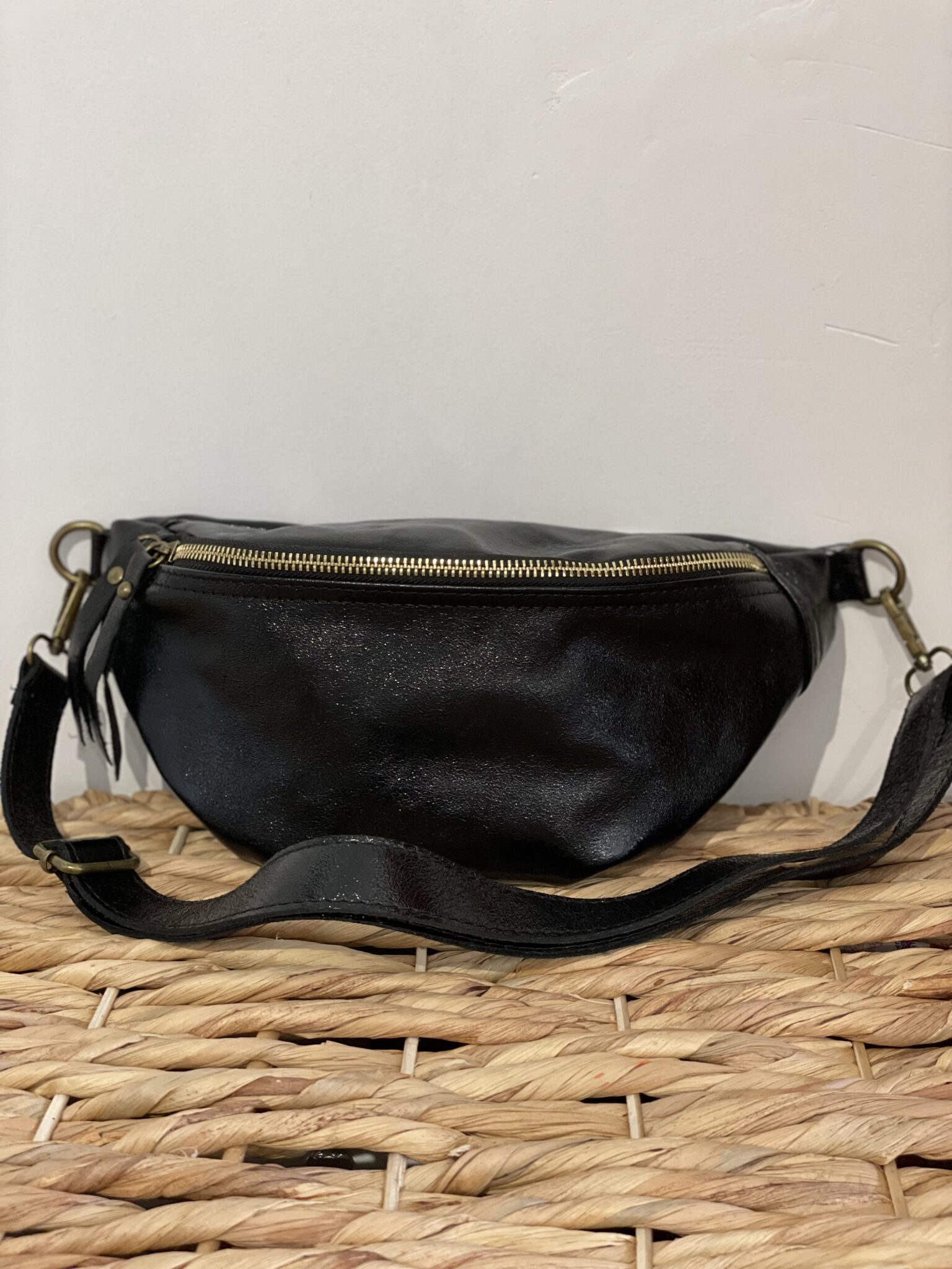 Banane en cuir Poche zippée à l’intérieur Bandoulière amovible et réglable Made in Italy Dimension: 27×15 cm