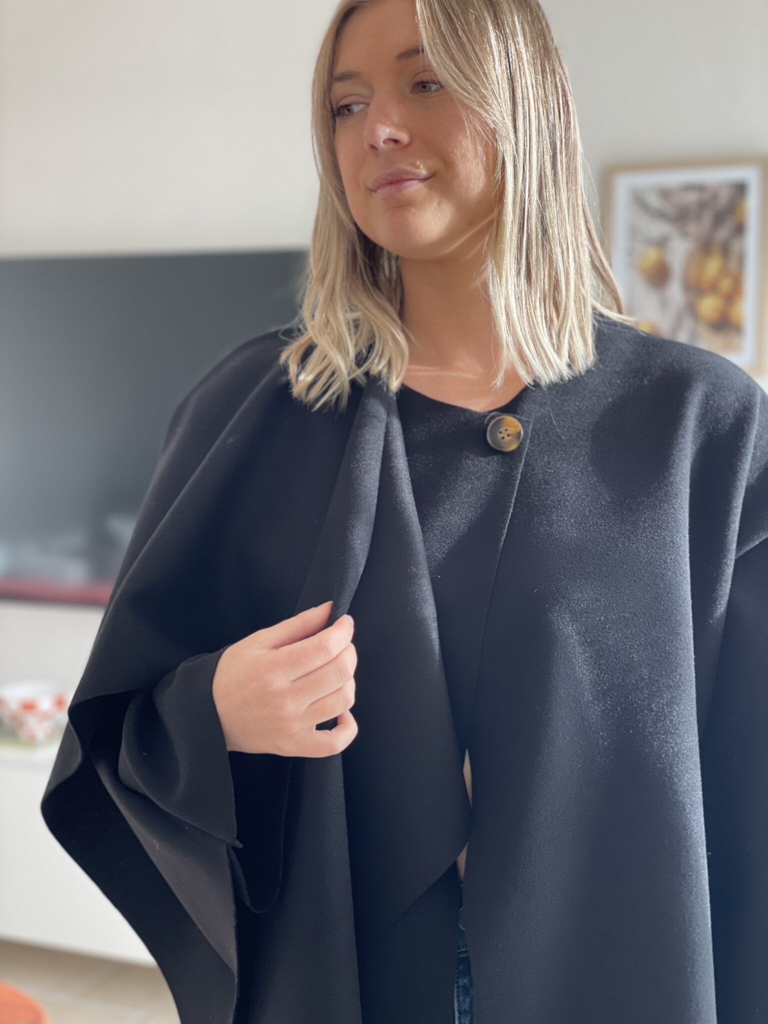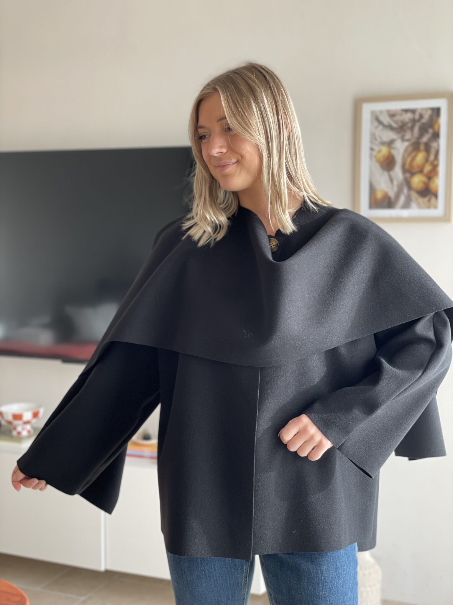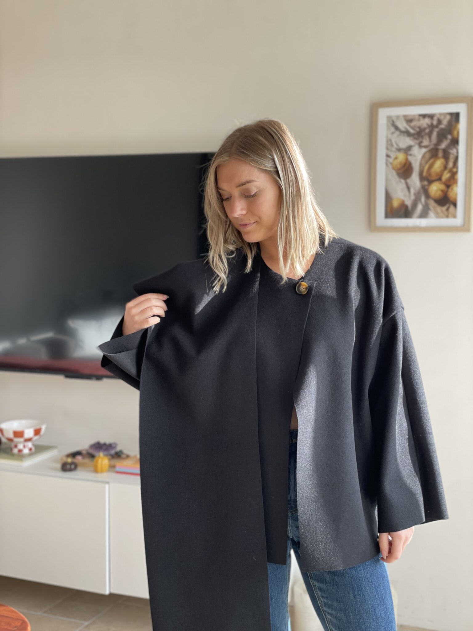 Coupe oversize Effet écharpe Manches chauve-souris Plus long dans le dos Bouton sur le col Oceane mesure 1m63 et porte habituellement une taille S 95% Polyester/ 5% Elasthanne Lavage à froid conseillé