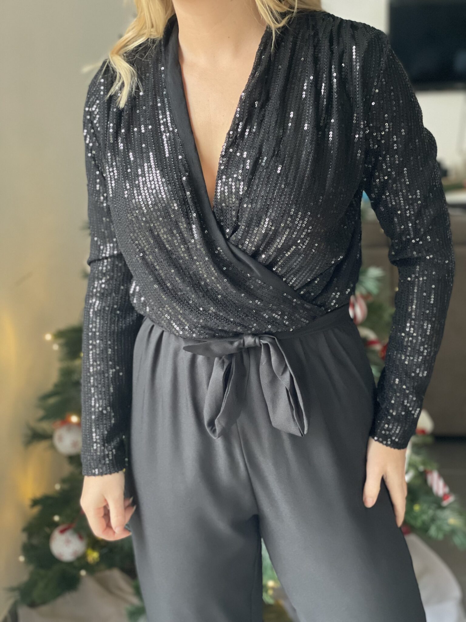 Matière fluide Décolleté cache-coeur Sequins sur le haut Elastique à la taille Ceinture amovible Oceane mesure 1m63 et porte une taille SM 100% Polyester Lavage à la main conseillé