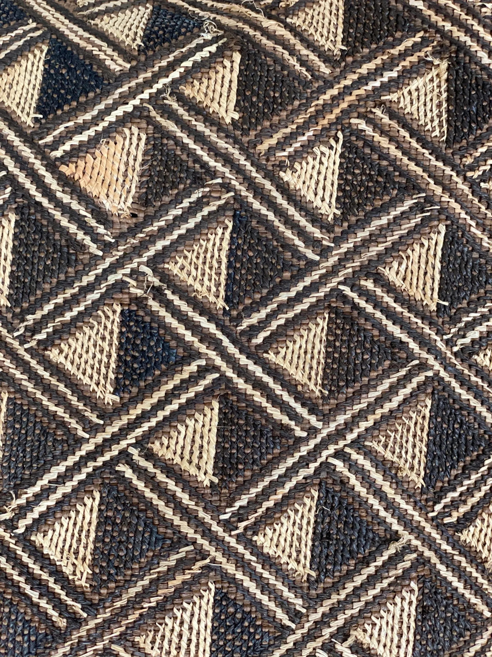 Les femmes se chargeaient ensuite de broder les raphias avec des motifs géométriques, porteurs de toute une symbolique.