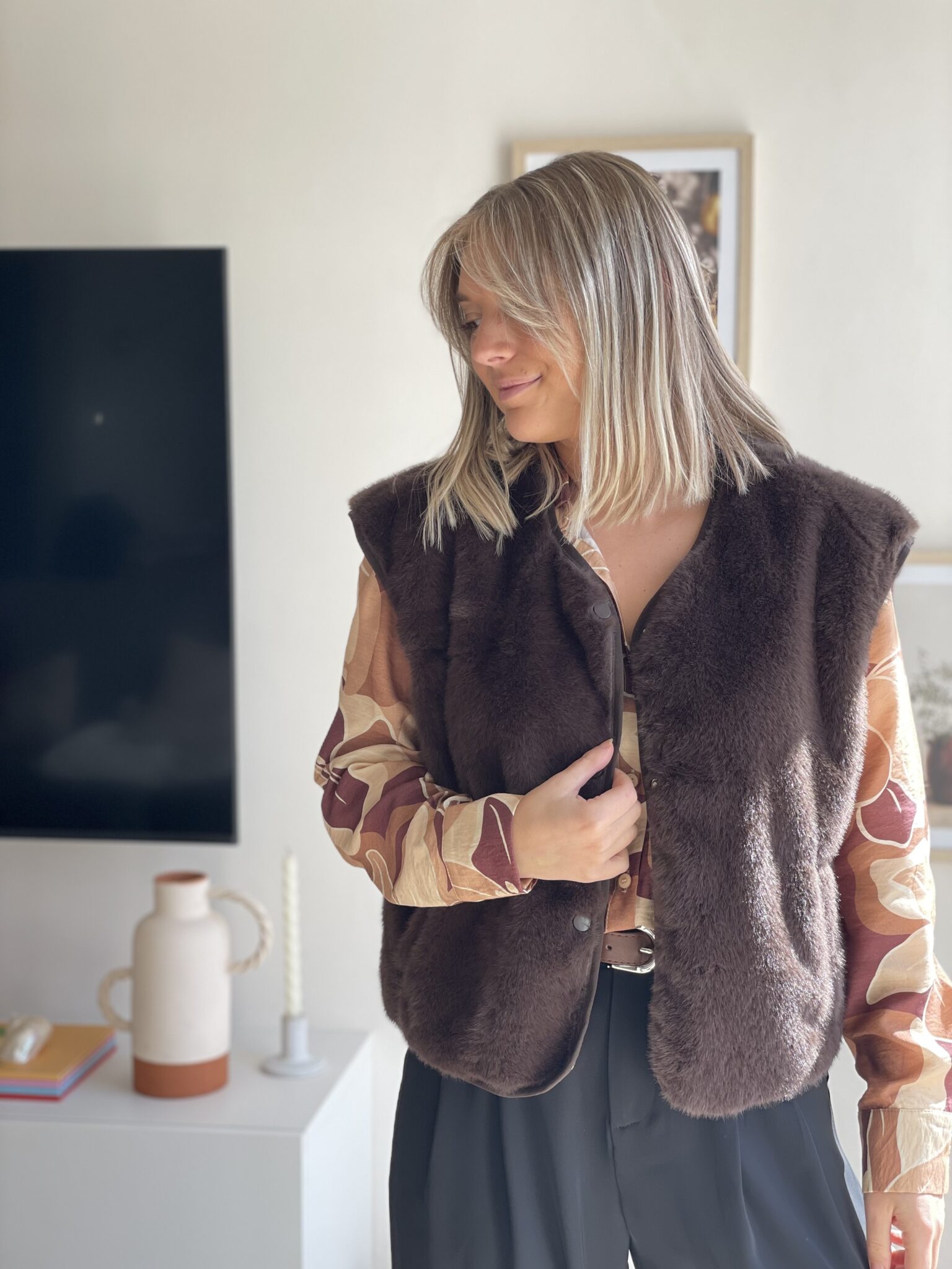 Matière en poils doux Coupe légèrement ample Boutons pressions Poches sur les côtés Doublé Oceane mesure 1m63 et porte une taille SM 100% Polyester Lavage à froid conseillé
