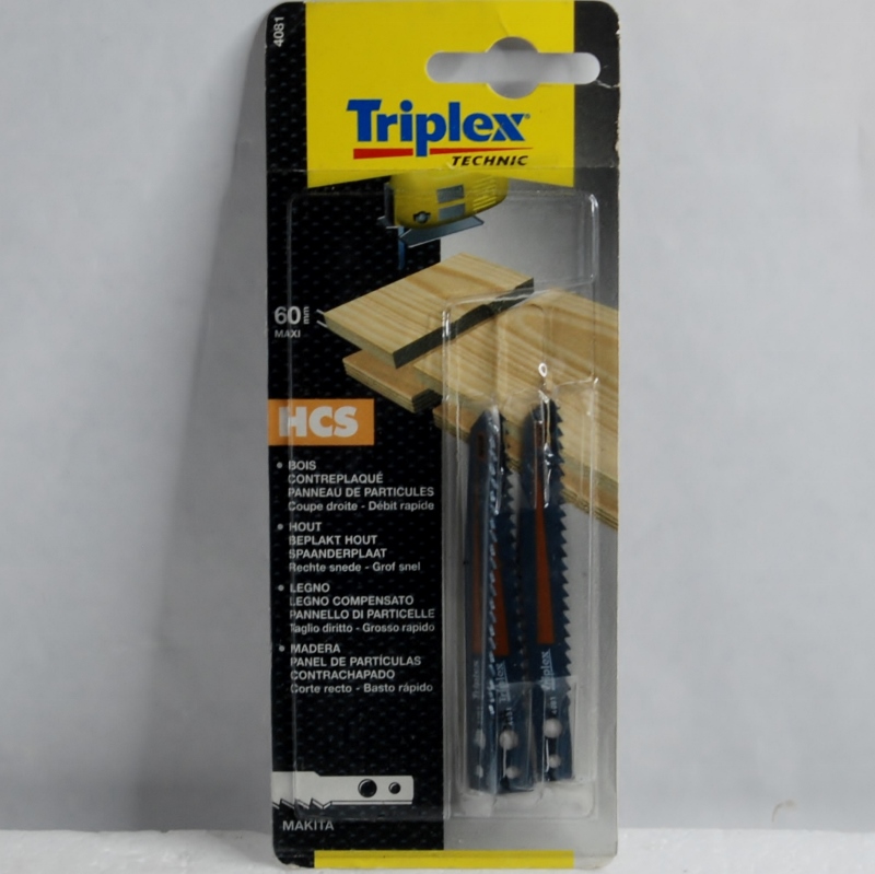 3 Lames de Scie Sauteuse de marque TRIPLEX. Attache pour scie sauteuse MAKITA. Bois, contreplaqué, panneau de particules. Coupe droite- débit rapide. 60mm maxi.