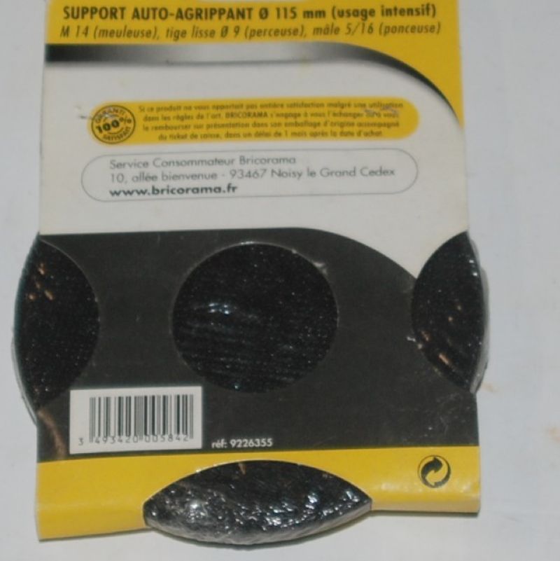 Plateau ponceur auto-agrippant pour perceuses ou meuleuses D.115 BRICORAMA. Alésage M14.. . . . . . . . . . . . . . . . . . . . . . . . .
