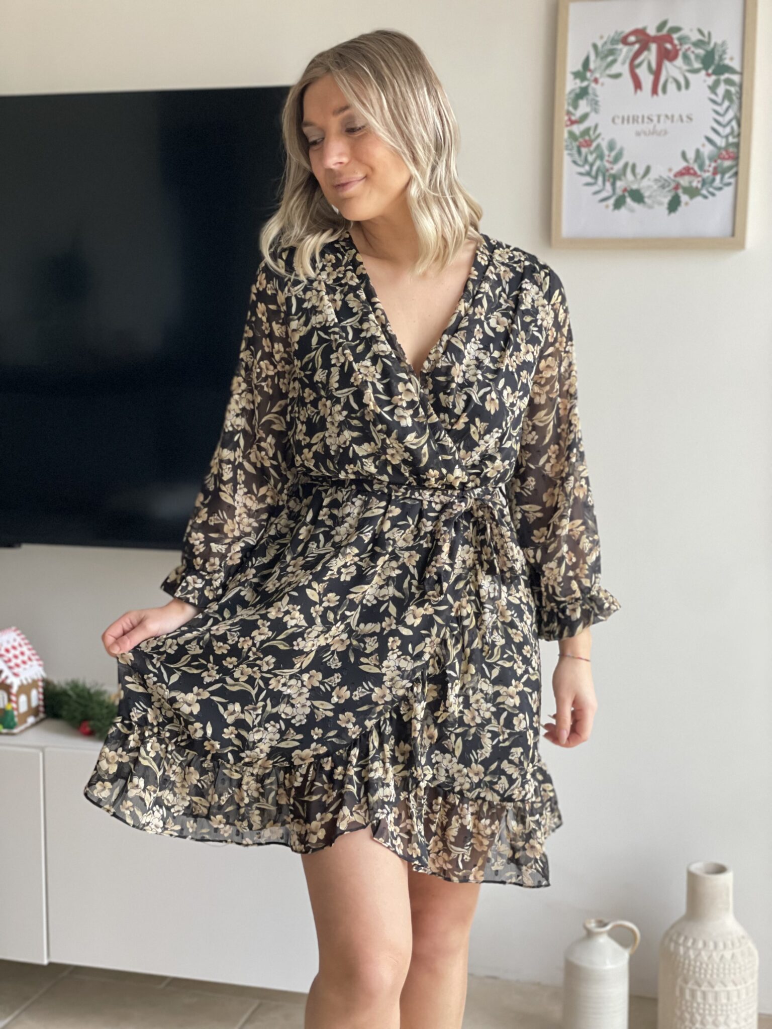 Matière voile Forme cache coeur Elastique à la taille Volants dans le bas Elastique au poignets Oceane mesure 1m63 et porte une taille S 100% Polyester Lavage à froid conseillé