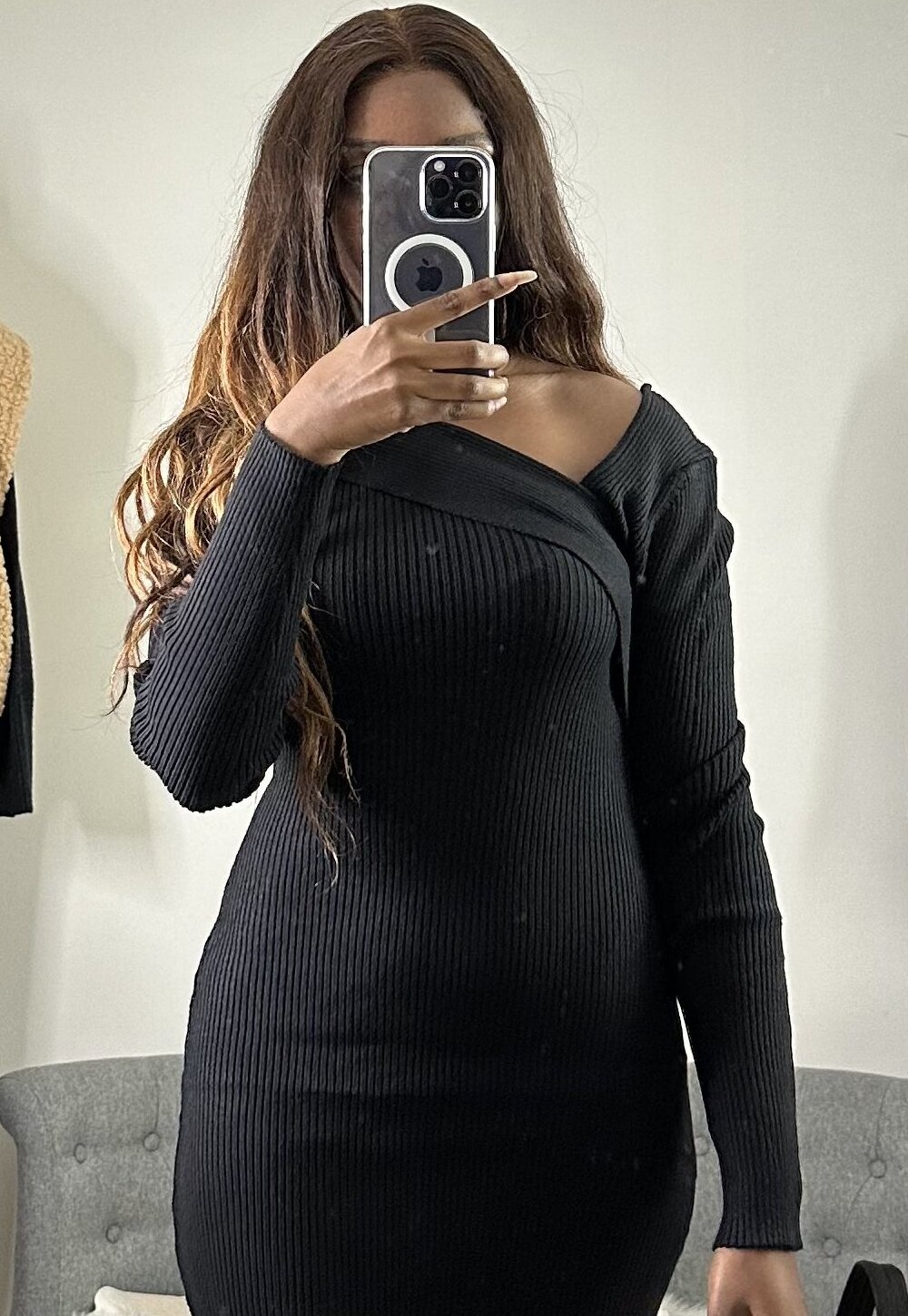 Robe asymétrique noir Couleur : Noir Le mannequin mesure 1m68 et porte du S/M
