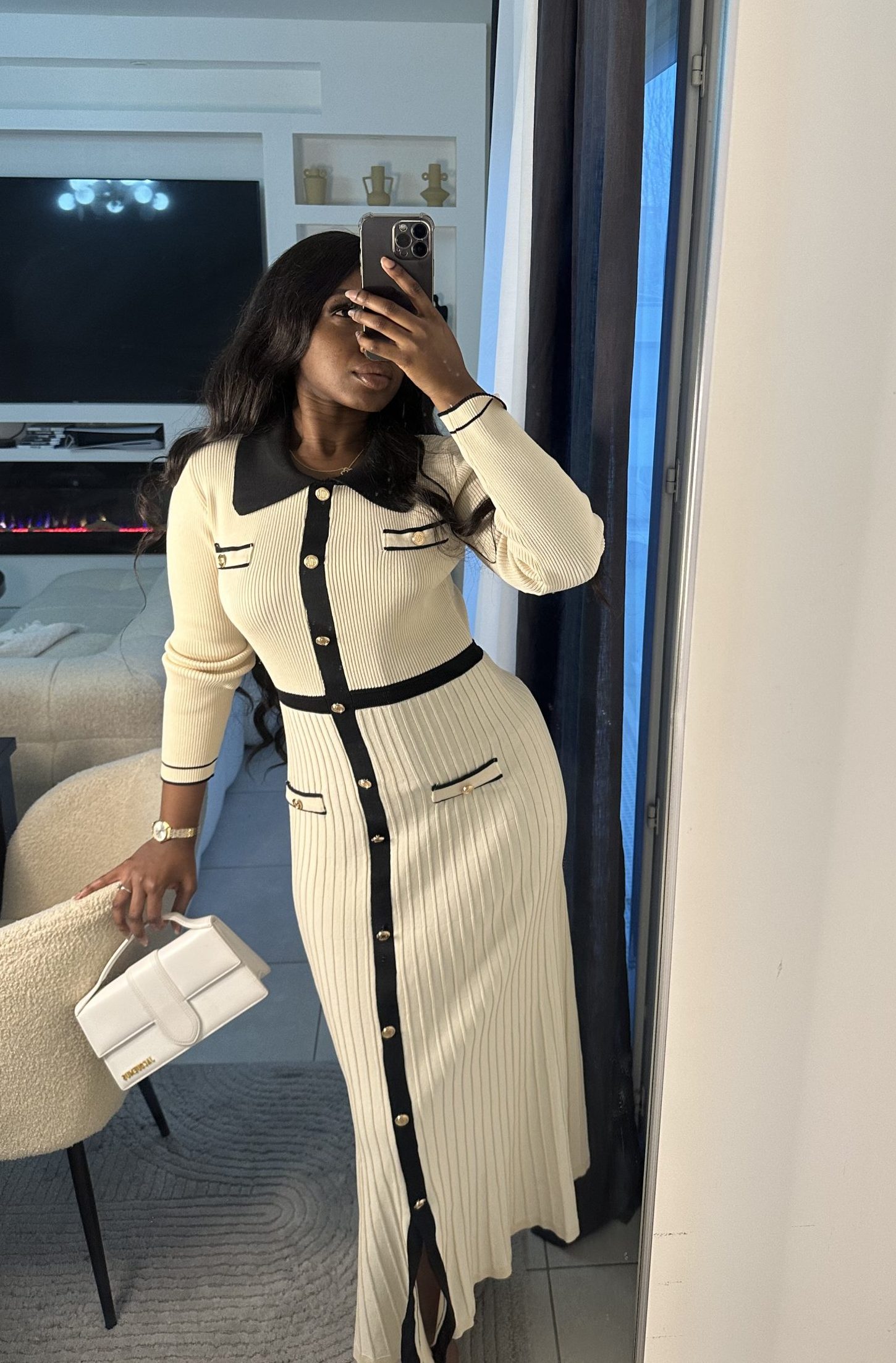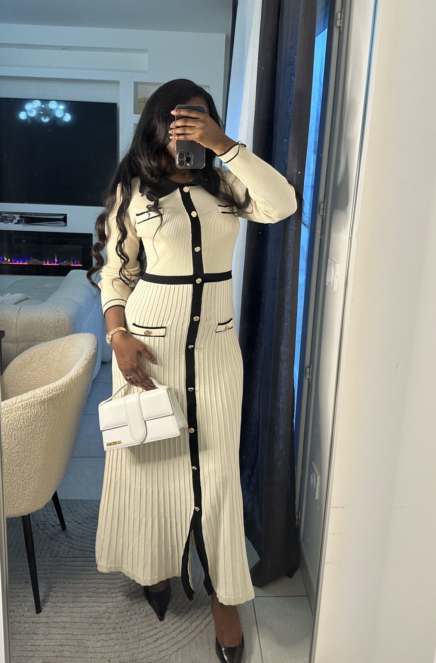 Robe élégante en maille N&B
