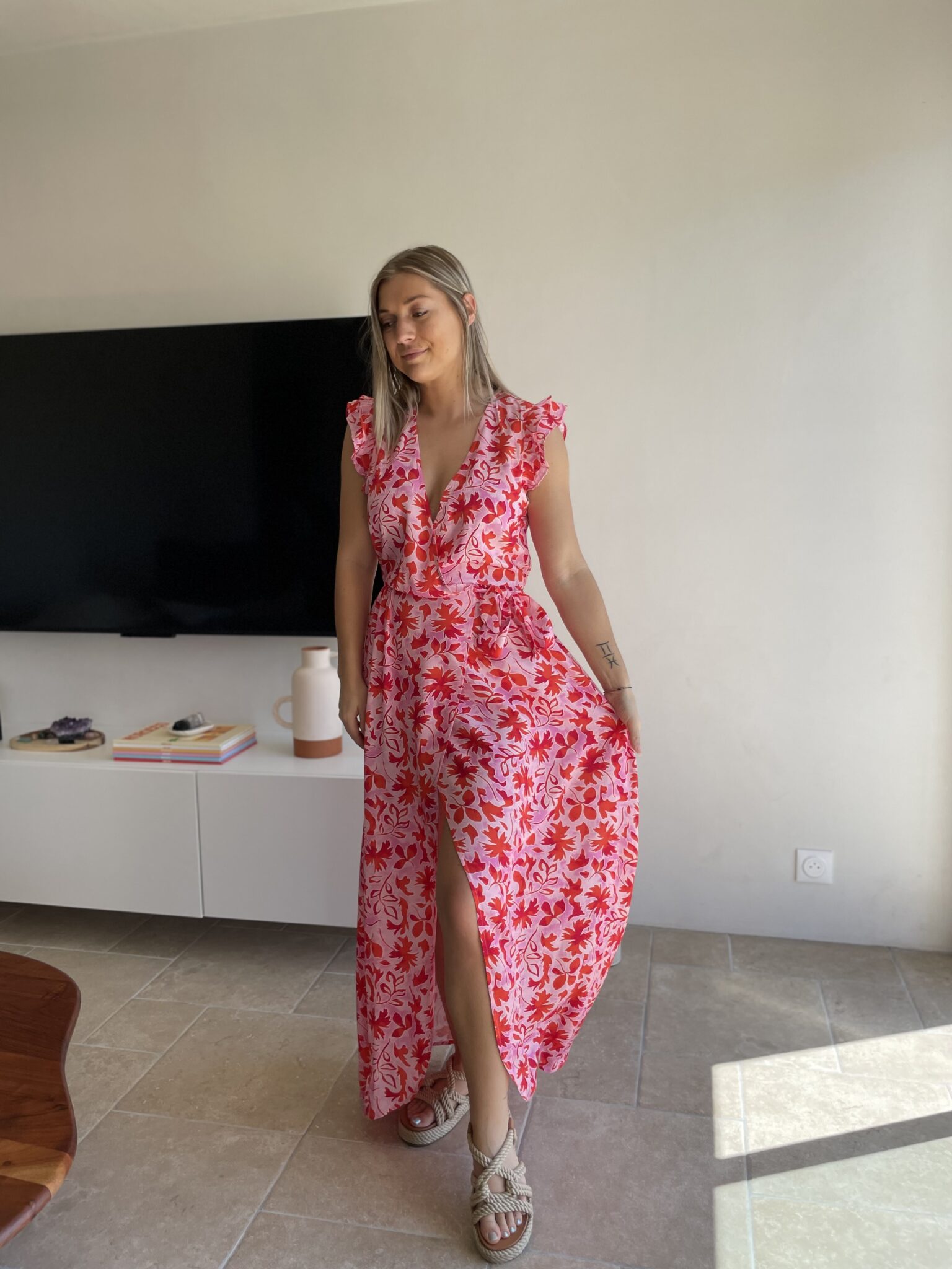 Coupe asymétrique Décolleté plongeant Cache coeur en haut Fermé sur le devant Volants sur les épaules Lien à nouer Oceane mesure 1m63 et porte une taille S 100% Viscose Lavage à froid conseillé