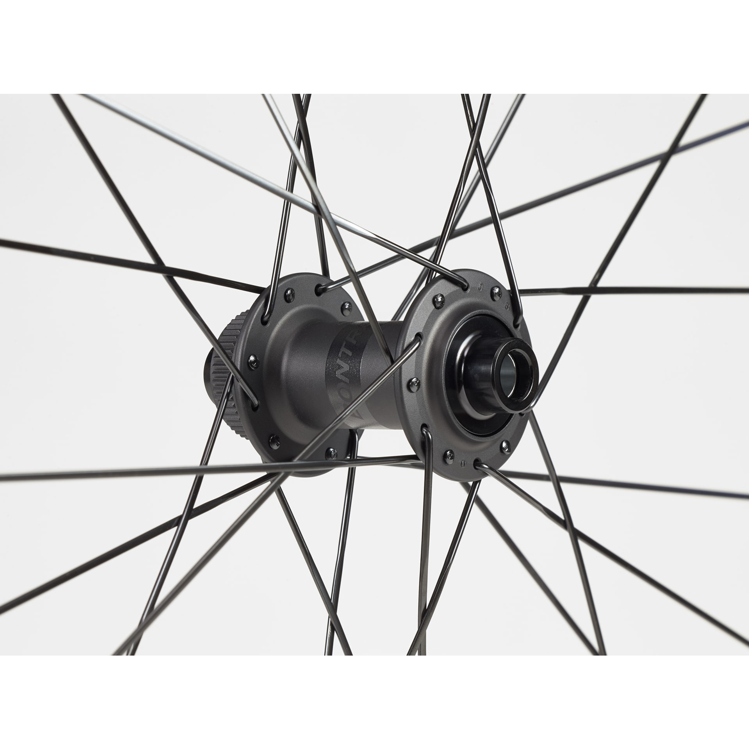 - Moyeux à disque Centerlock, avec axe traversant de 12 mm à l’avant et à l’arrière, Bontrager 24 crans, moyeu 3 cliquets